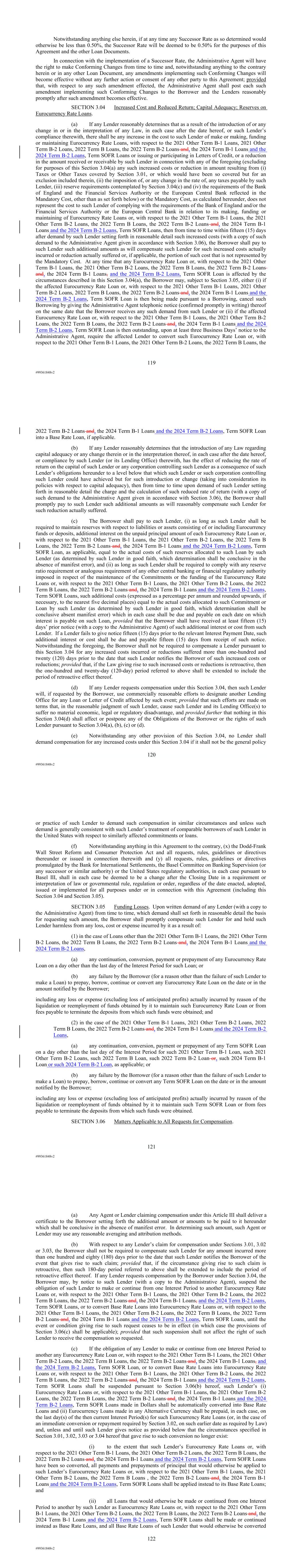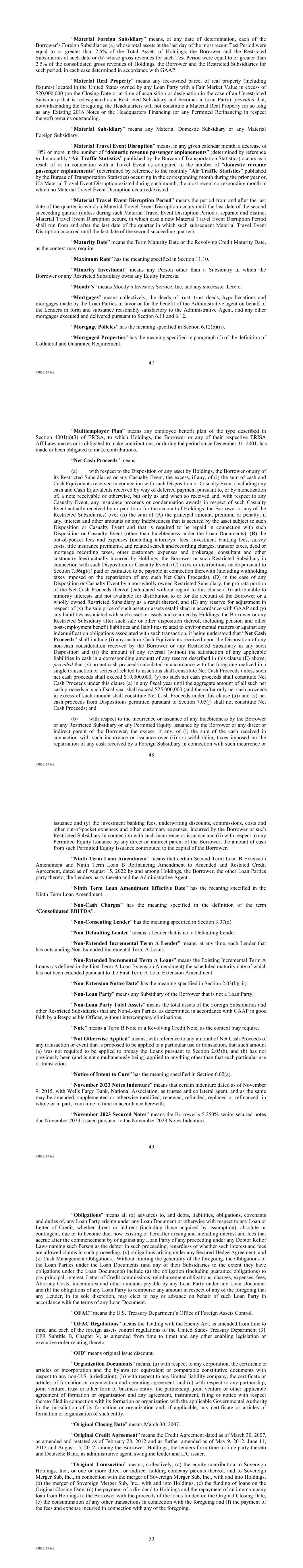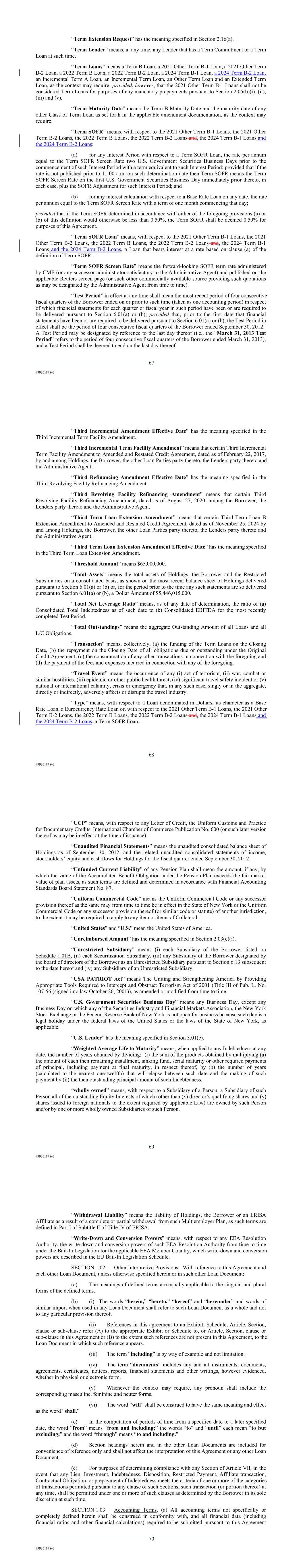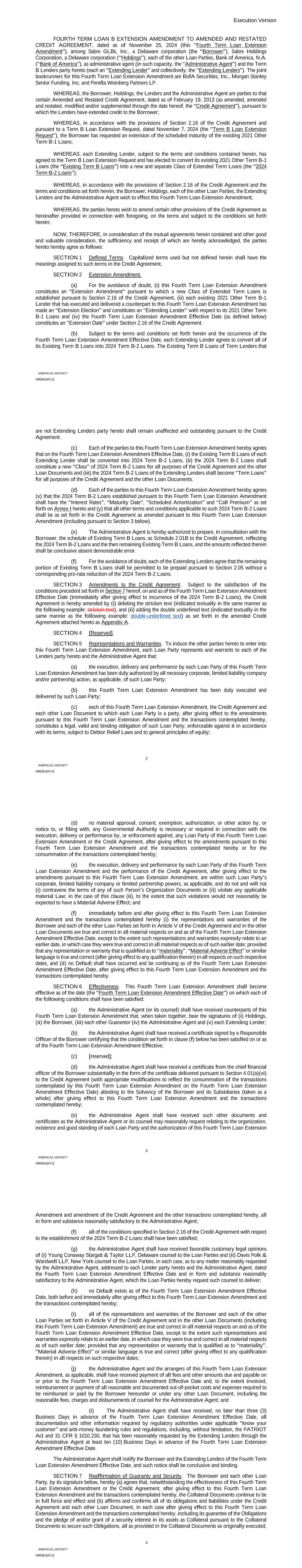| 10.122 | | Term Loan Credit Agreement, dated as of June 13, 2023, among Sabre Financial Borrower, LLC, as borrower, Sabre Financing Holdings, LLC, as holdings, the subsidiary guarantors party thereto, the lenders party thereto and Wilmington Trust, National Association, as administrative agent (incorporated by reference to Exhibit 10.1 of the Sabre Corporation’s Current Report on Form 8-K filed with the Securities and Exchange Commission on June 16, 2023). |
