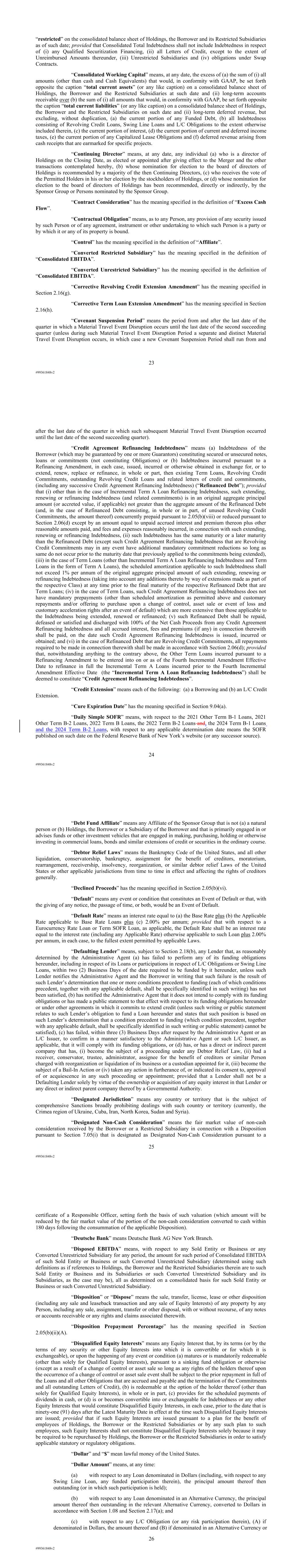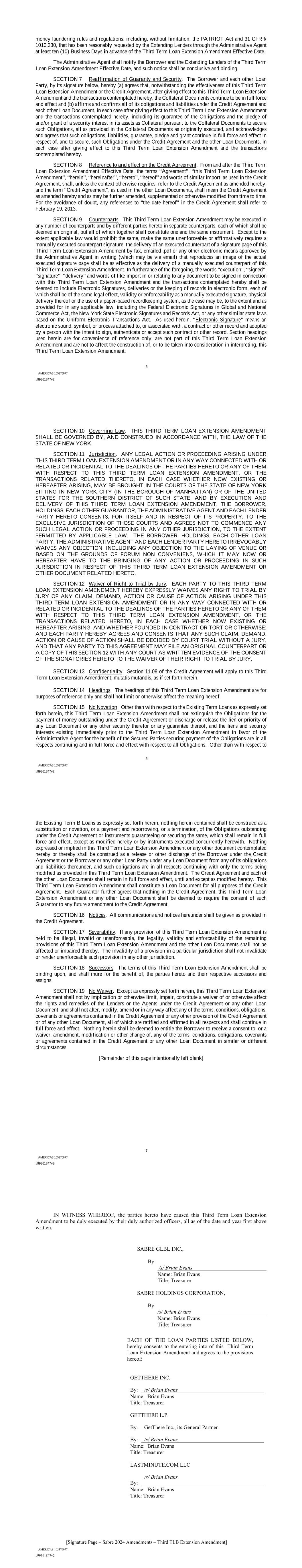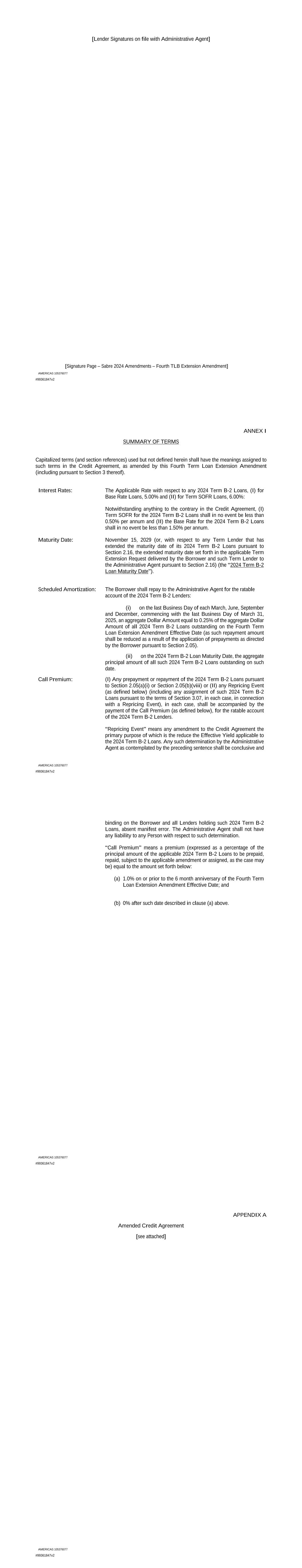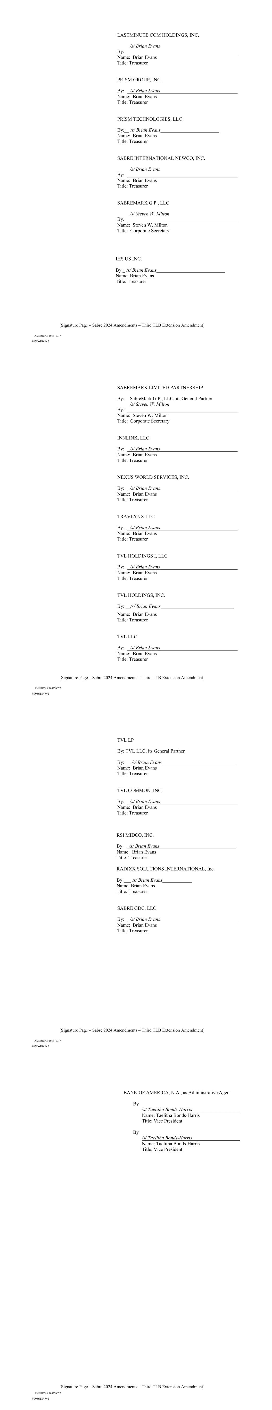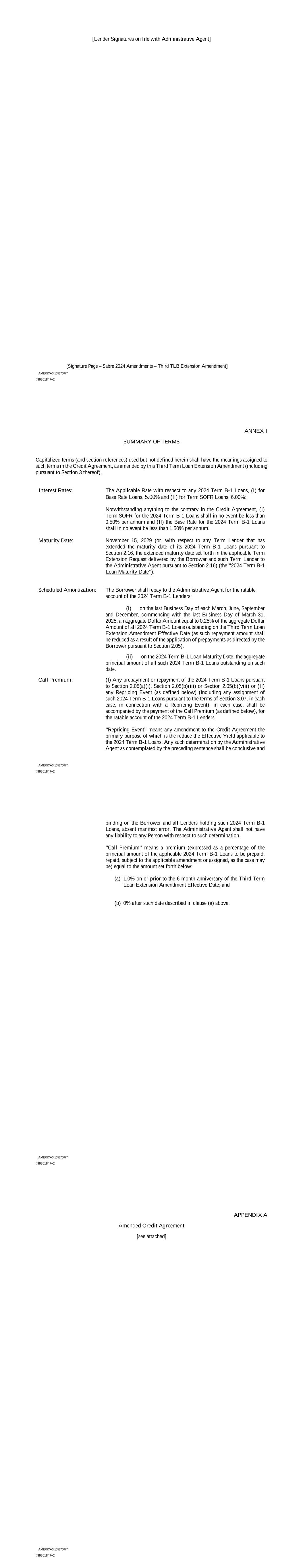 | 10.124 | | First Lien Pari Passu Credit Agreement, dated as of June 13, 2023, among Sabre GLBL Inc., as borrower, Sabre Holdings Corporation, as holdings, Sabre Financial Borrower, LLC, as lender, and Wilmington Trust, National Association, as administrative agent (incorporated by reference to Exhibit 10.3 of the Sabre Corporation’s Current Report on Form 8-K filed with the Securities and Exchange Commission on June 16, 2023). |