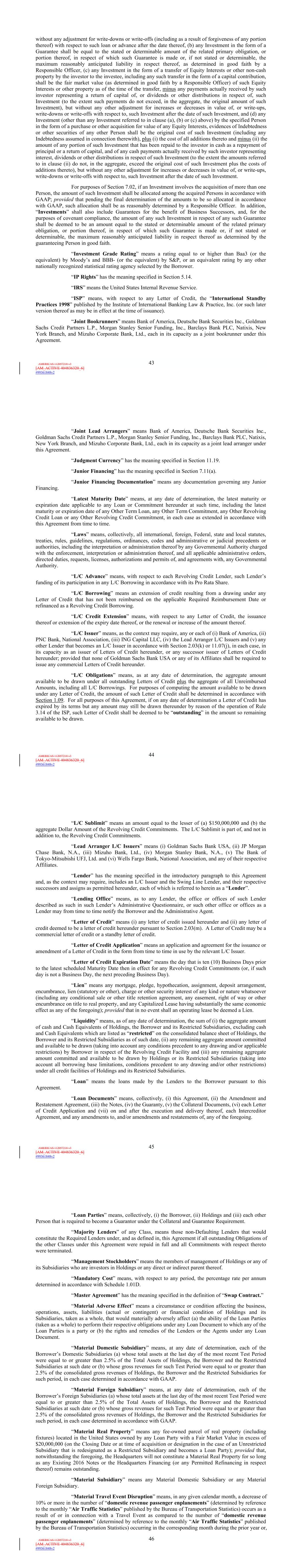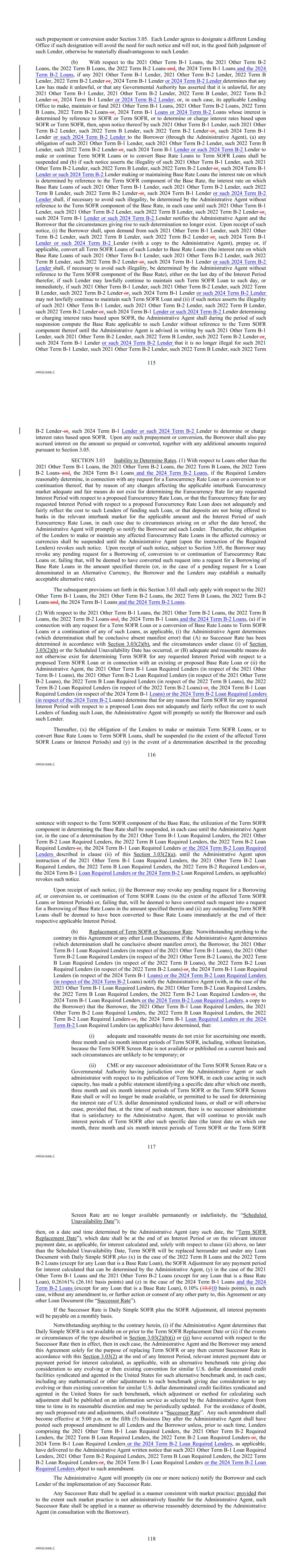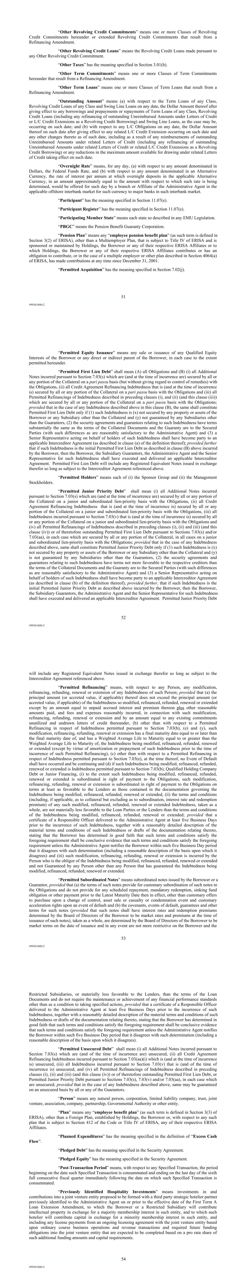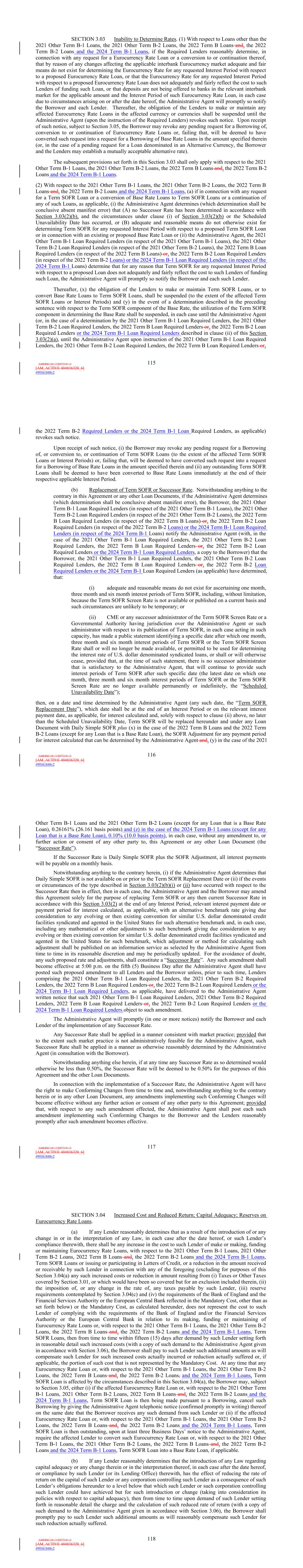 | 10.124 | | First Lien Pari Passu Credit Agreement, dated as of June 13, 2023, among Sabre GLBL Inc., as borrower, Sabre Holdings Corporation, as holdings, Sabre Financial Borrower, LLC, as lender, and Wilmington Trust, National Association, as administrative agent (incorporated by reference to Exhibit 10.3 of the Sabre Corporation’s Current Report on Form 8-K filed with the Securities and Exchange Commission on June 16, 2023). |