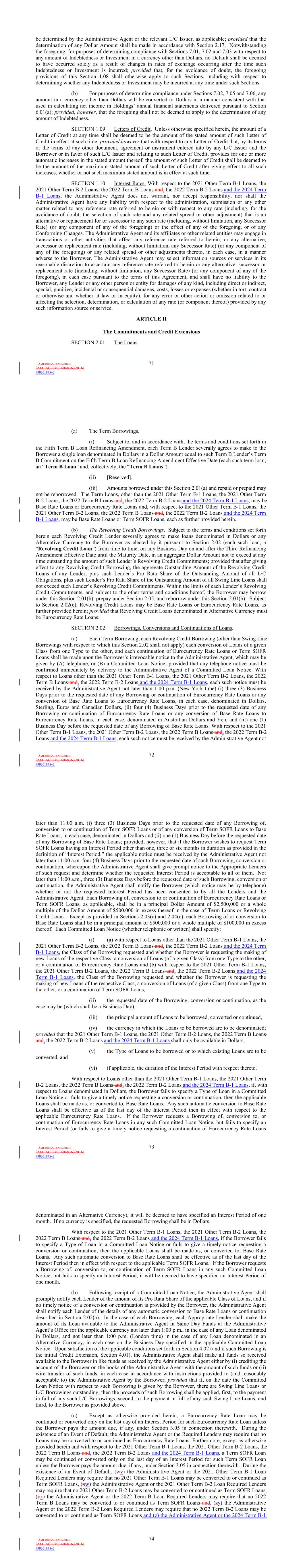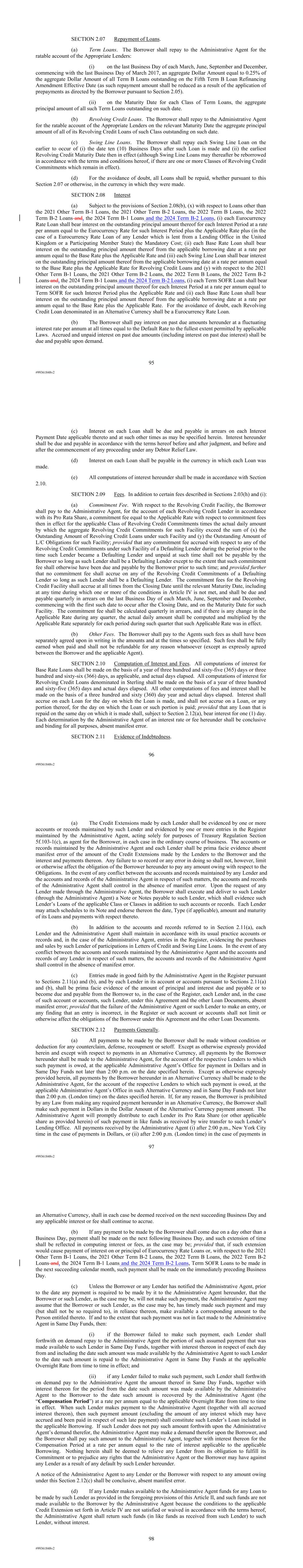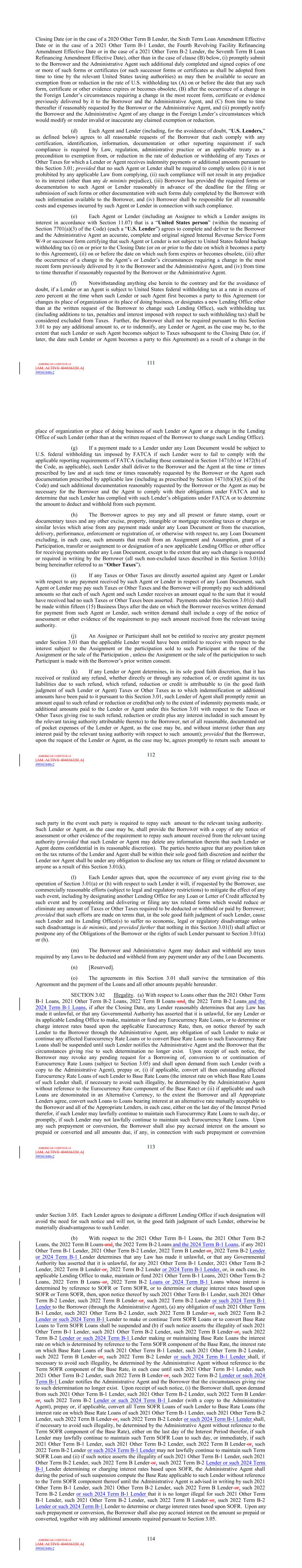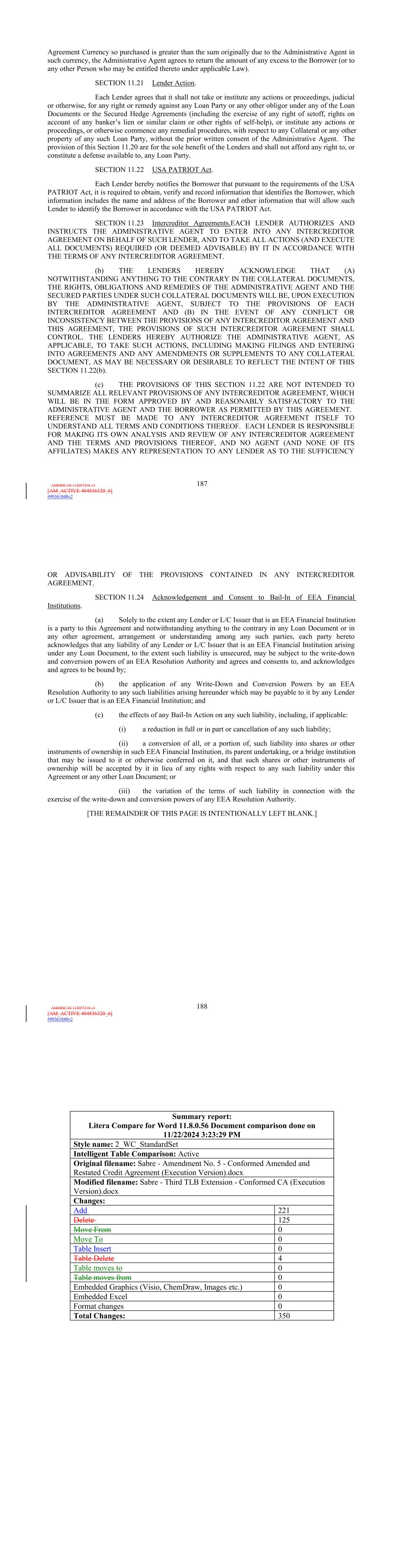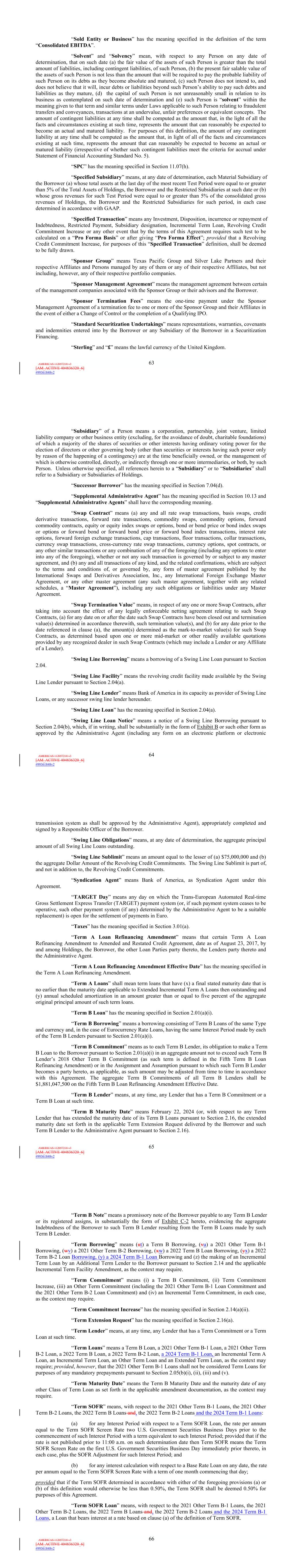 | 10.124 | | First Lien Pari Passu Credit Agreement, dated as of June 13, 2023, among Sabre GLBL Inc., as borrower, Sabre Holdings Corporation, as holdings, Sabre Financial Borrower, LLC, as lender, and Wilmington Trust, National Association, as administrative agent (incorporated by reference to Exhibit 10.3 of the Sabre Corporation’s Current Report on Form 8-K filed with the Securities and Exchange Commission on June 16, 2023). |