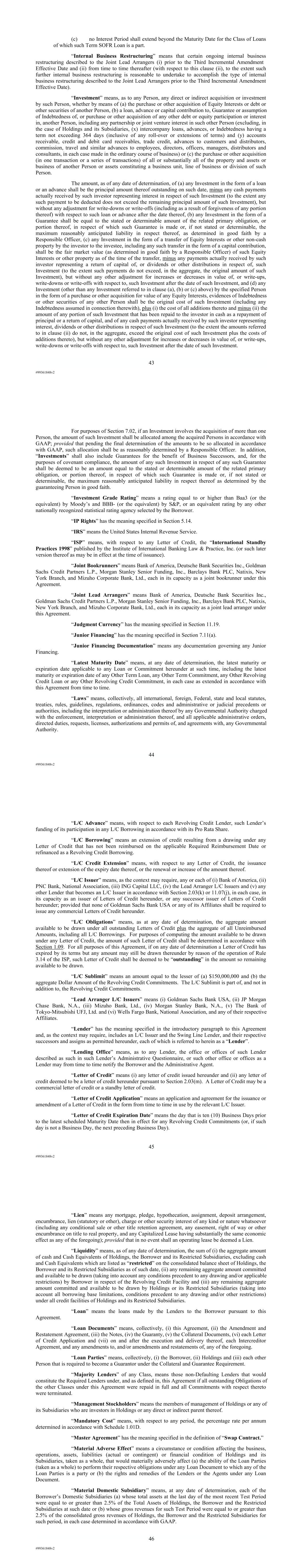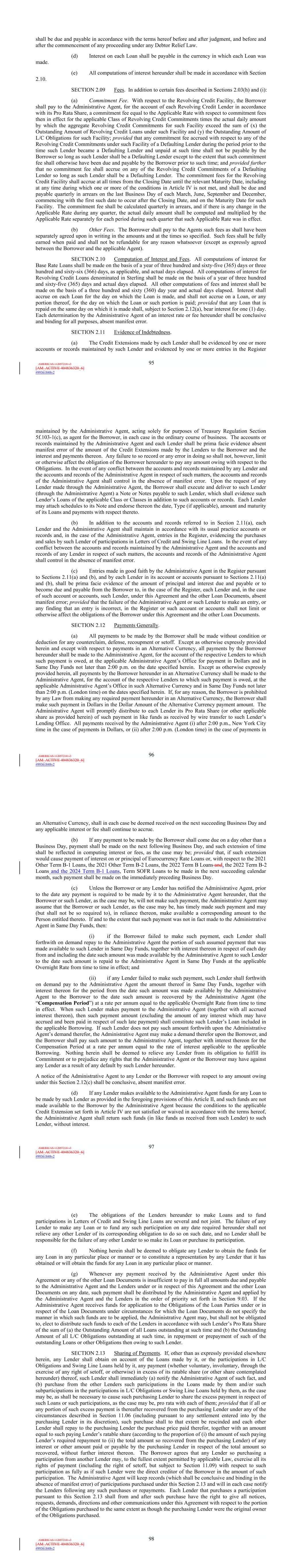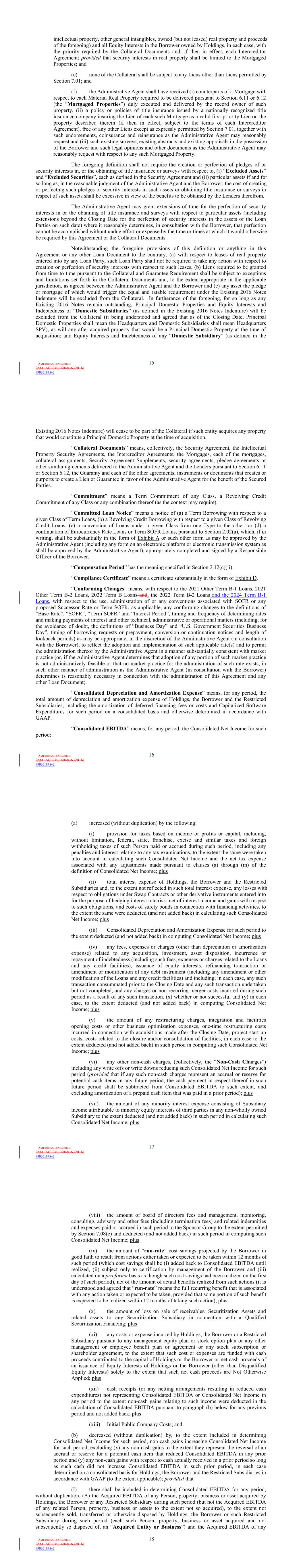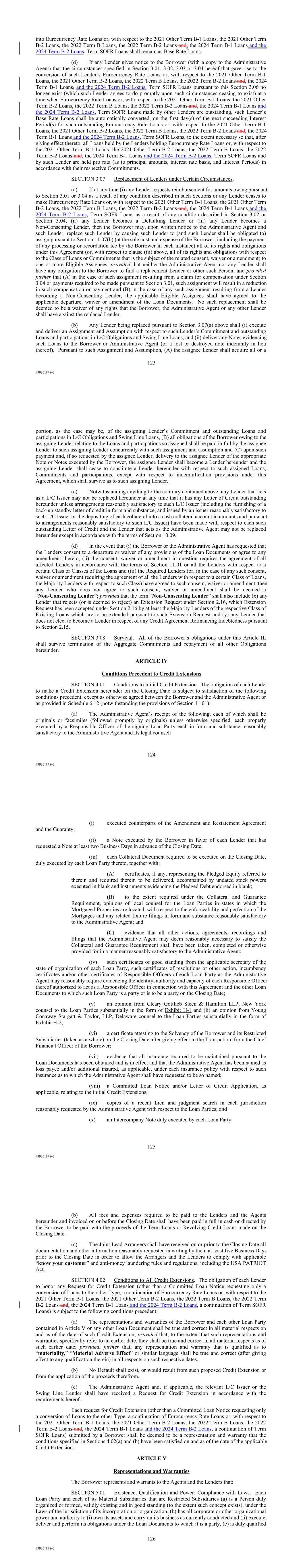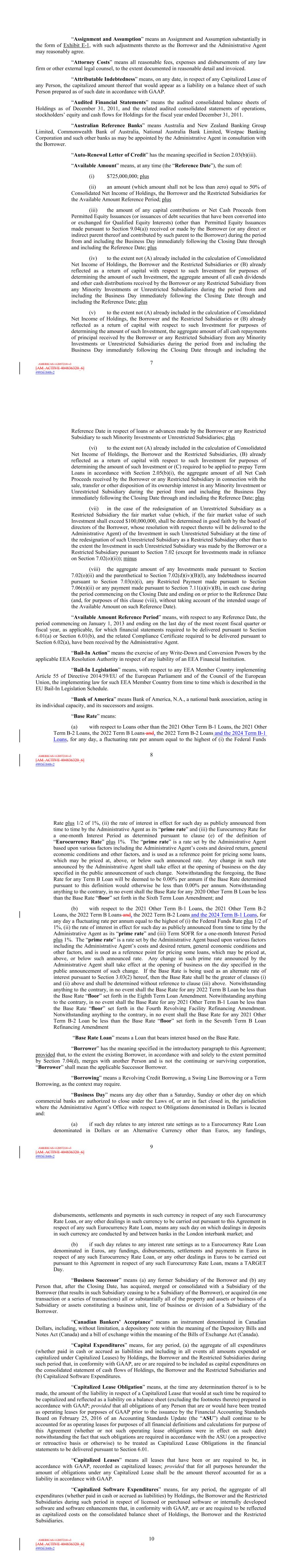 | 10.124 | | First Lien Pari Passu Credit Agreement, dated as of June 13, 2023, among Sabre GLBL Inc., as borrower, Sabre Holdings Corporation, as holdings, Sabre Financial Borrower, LLC, as lender, and Wilmington Trust, National Association, as administrative agent (incorporated by reference to Exhibit 10.3 of the Sabre Corporation’s Current Report on Form 8-K filed with the Securities and Exchange Commission on June 16, 2023). |