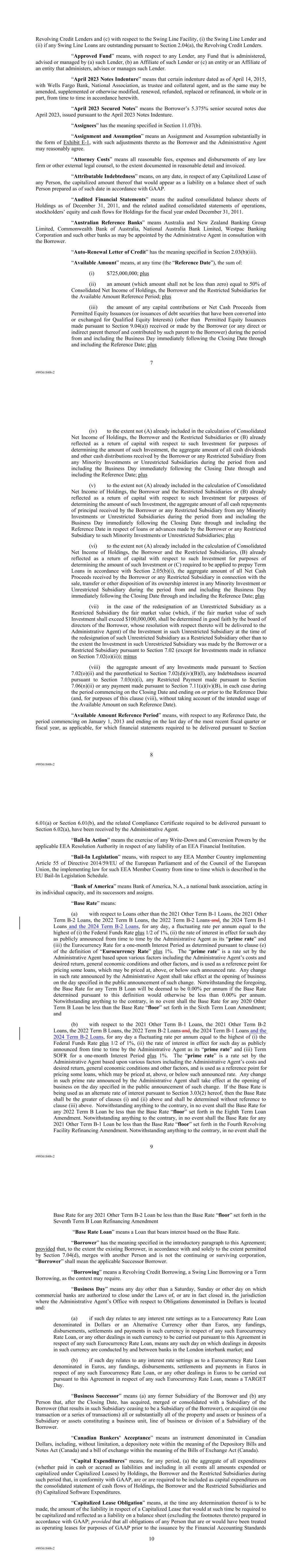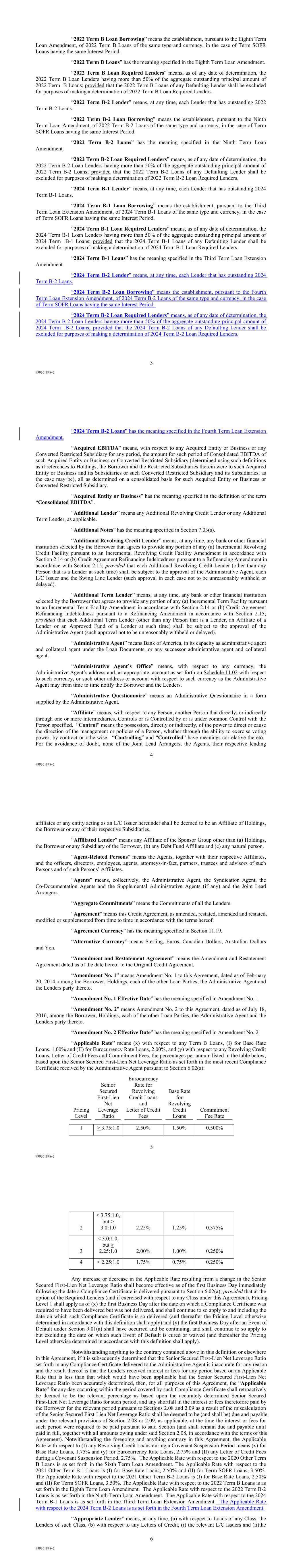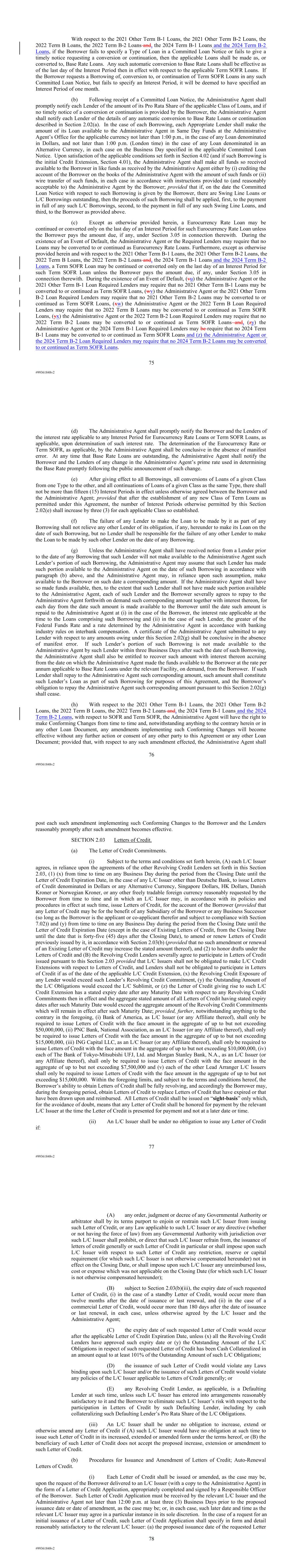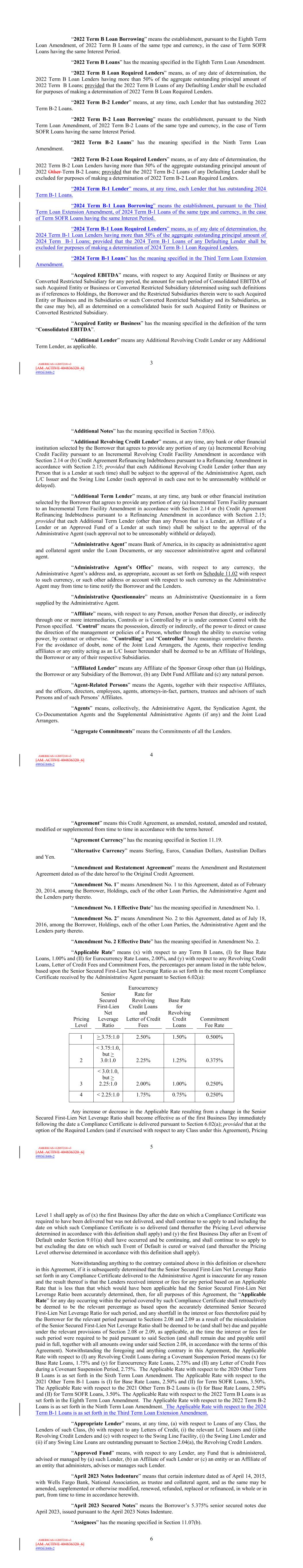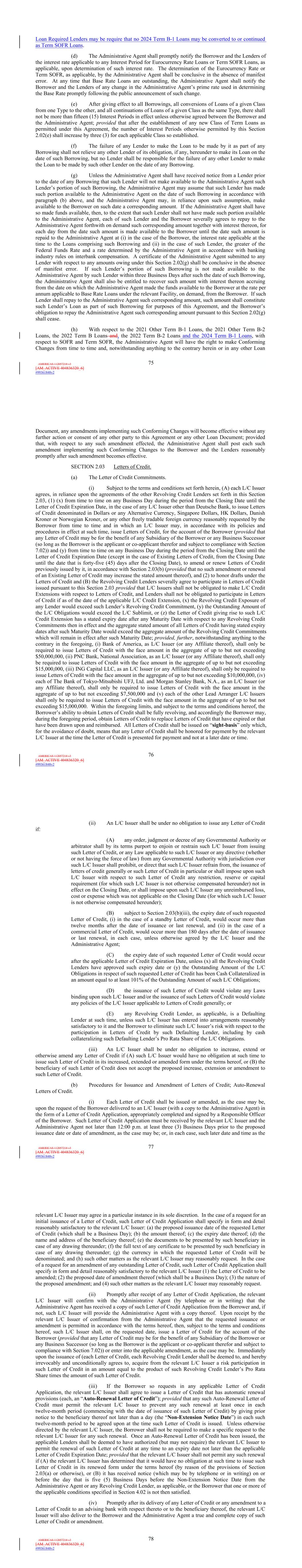 | 10.124 | | First Lien Pari Passu Credit Agreement, dated as of June 13, 2023, among Sabre GLBL Inc., as borrower, Sabre Holdings Corporation, as holdings, Sabre Financial Borrower, LLC, as lender, and Wilmington Trust, National Association, as administrative agent (incorporated by reference to Exhibit 10.3 of the Sabre Corporation’s Current Report on Form 8-K filed with the Securities and Exchange Commission on June 16, 2023). |