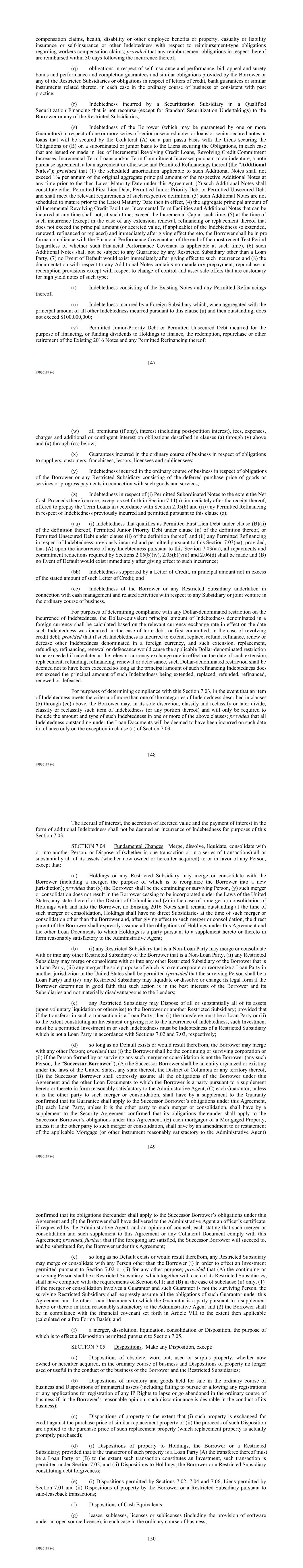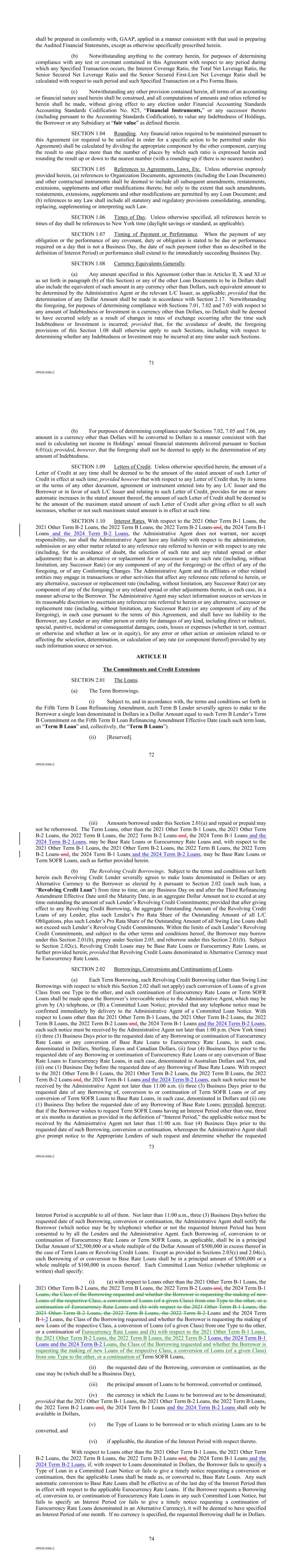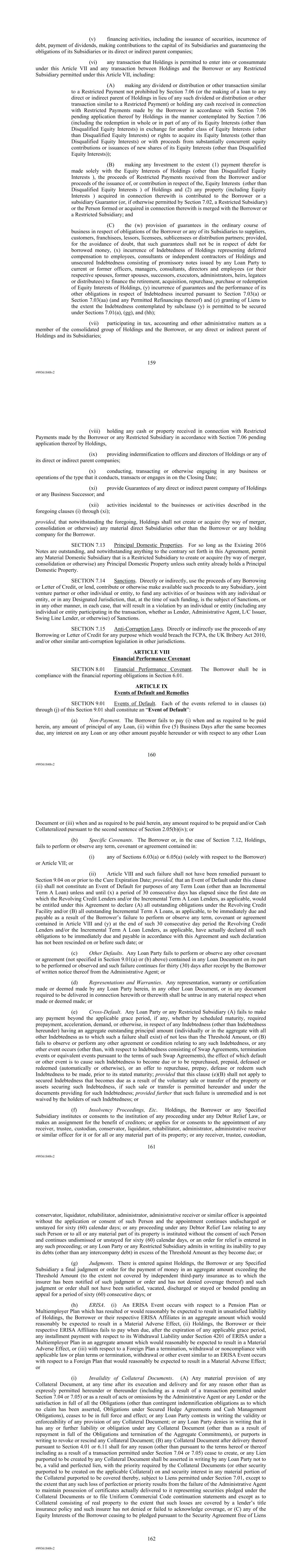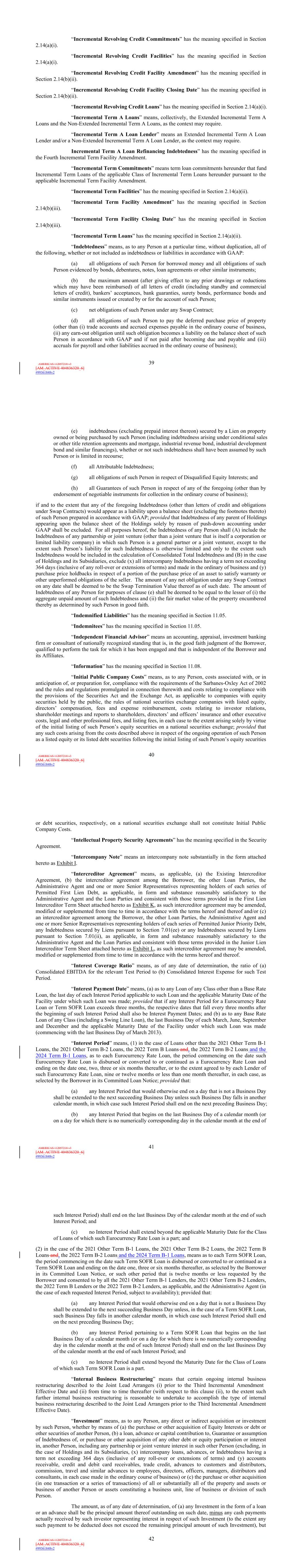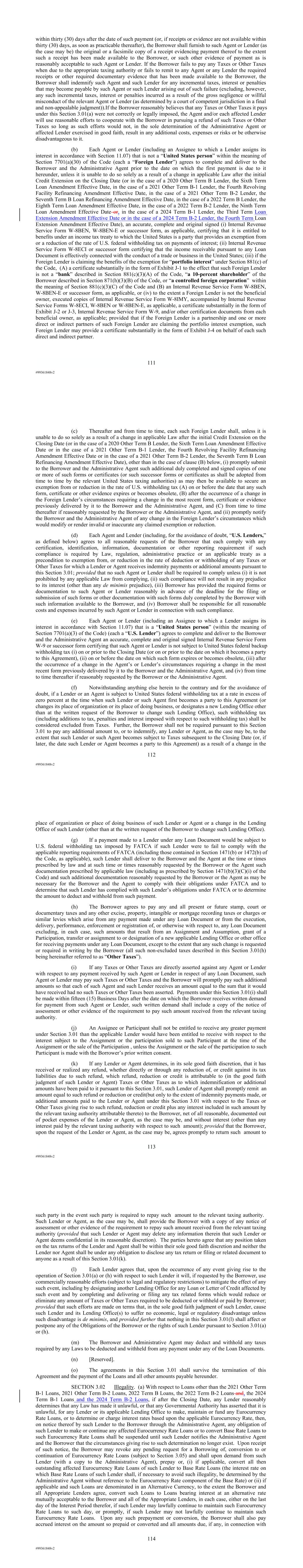 | 10.124 | | First Lien Pari Passu Credit Agreement, dated as of June 13, 2023, among Sabre GLBL Inc., as borrower, Sabre Holdings Corporation, as holdings, Sabre Financial Borrower, LLC, as lender, and Wilmington Trust, National Association, as administrative agent (incorporated by reference to Exhibit 10.3 of the Sabre Corporation’s Current Report on Form 8-K filed with the Securities and Exchange Commission on June 16, 2023). |