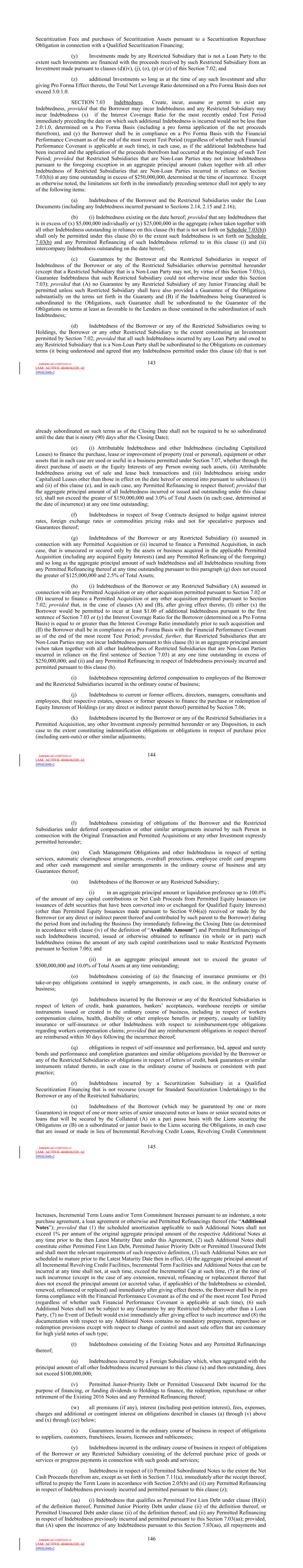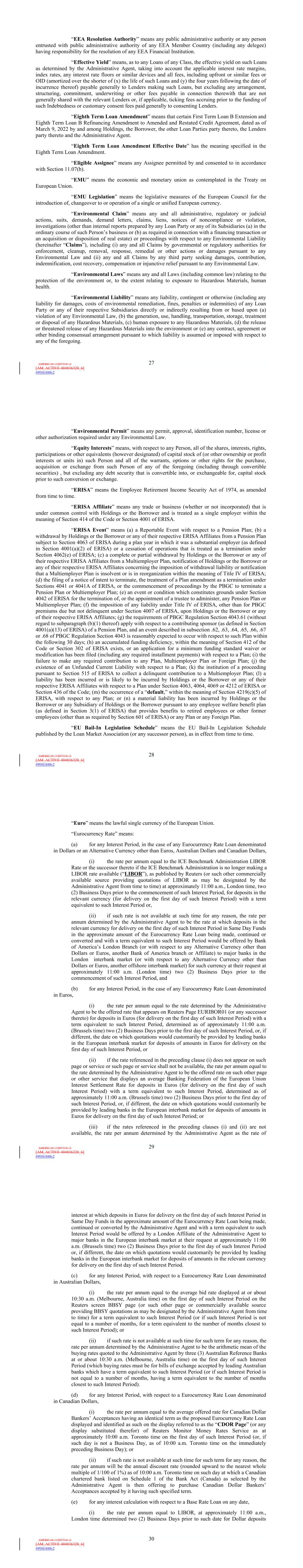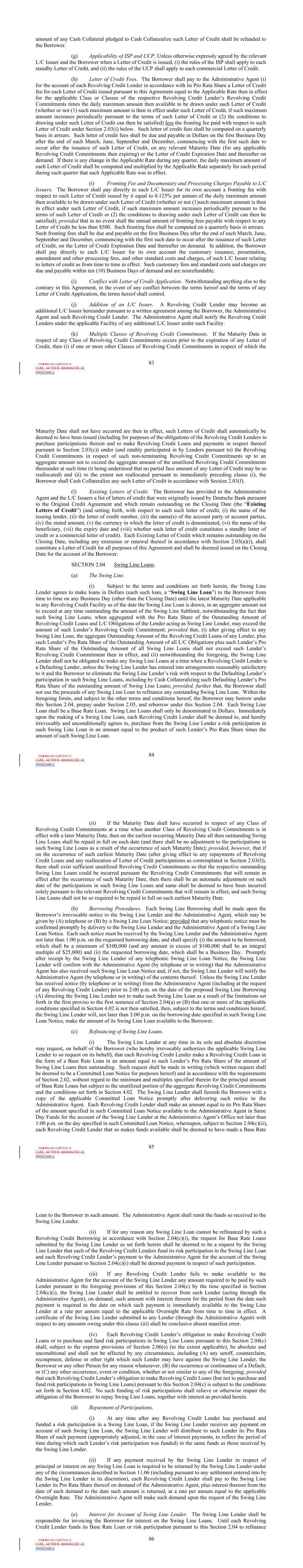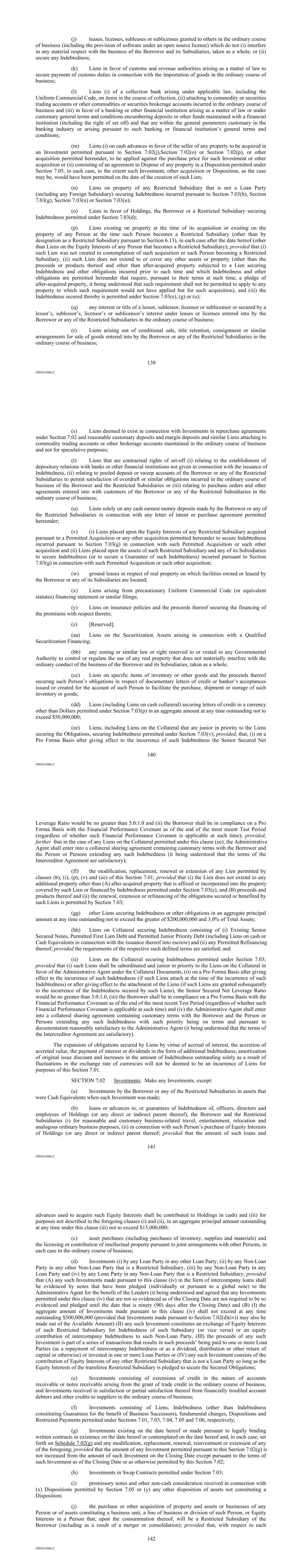 | 10.124 | | First Lien Pari Passu Credit Agreement, dated as of June 13, 2023, among Sabre GLBL Inc., as borrower, Sabre Holdings Corporation, as holdings, Sabre Financial Borrower, LLC, as lender, and Wilmington Trust, National Association, as administrative agent (incorporated by reference to Exhibit 10.3 of the Sabre Corporation’s Current Report on Form 8-K filed with the Securities and Exchange Commission on June 16, 2023). |