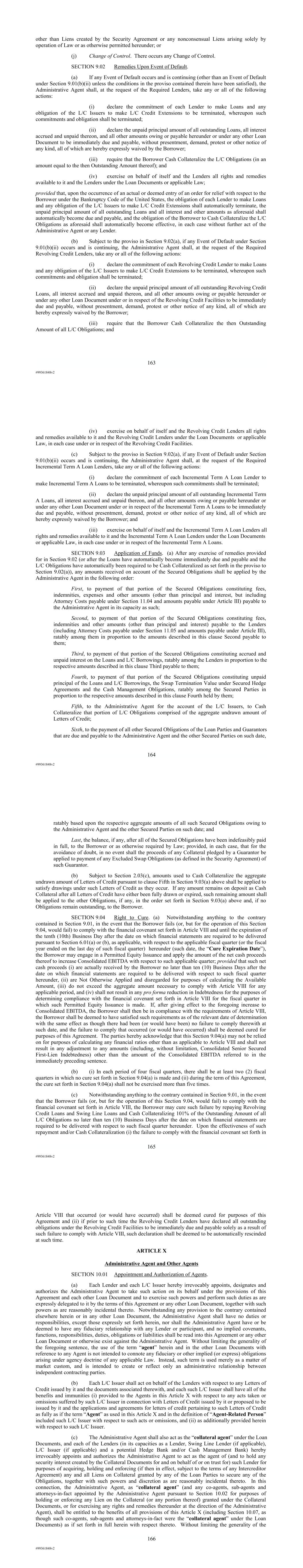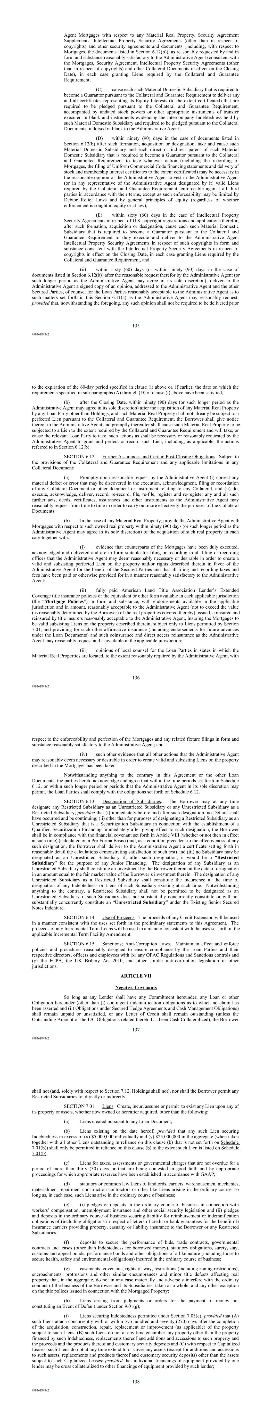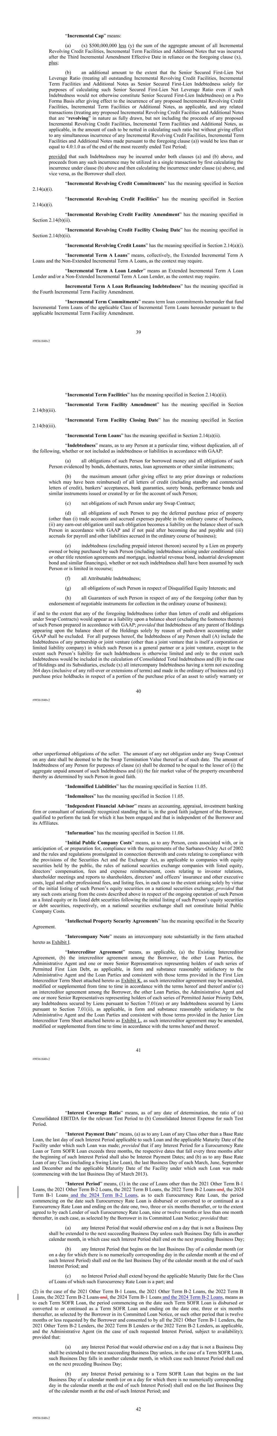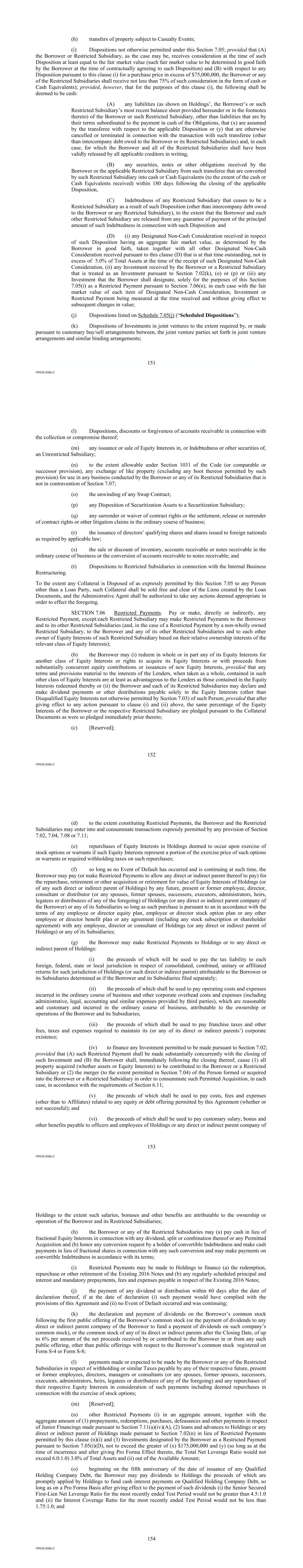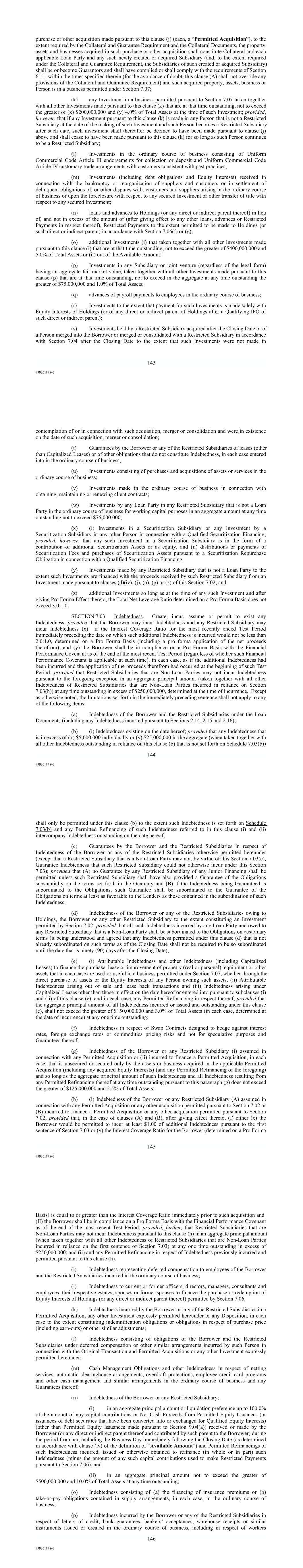 | 10.124 | | First Lien Pari Passu Credit Agreement, dated as of June 13, 2023, among Sabre GLBL Inc., as borrower, Sabre Holdings Corporation, as holdings, Sabre Financial Borrower, LLC, as lender, and Wilmington Trust, National Association, as administrative agent (incorporated by reference to Exhibit 10.3 of the Sabre Corporation’s Current Report on Form 8-K filed with the Securities and Exchange Commission on June 16, 2023). |