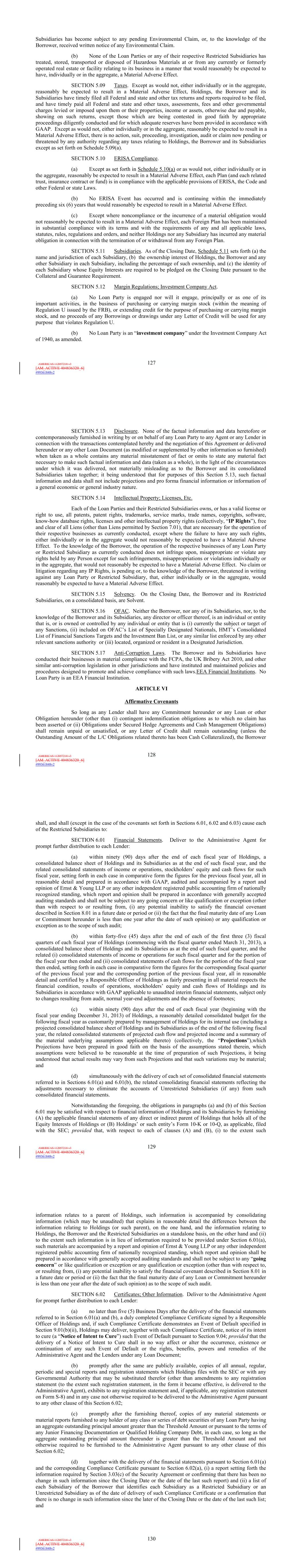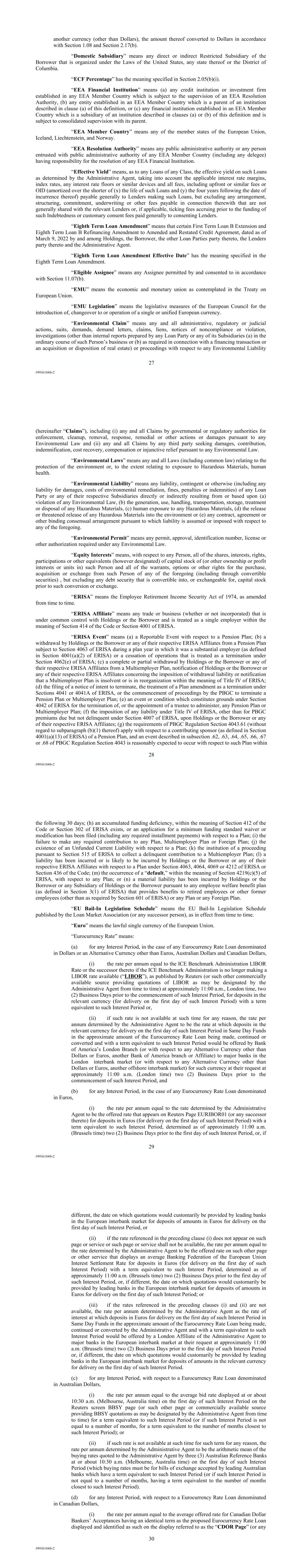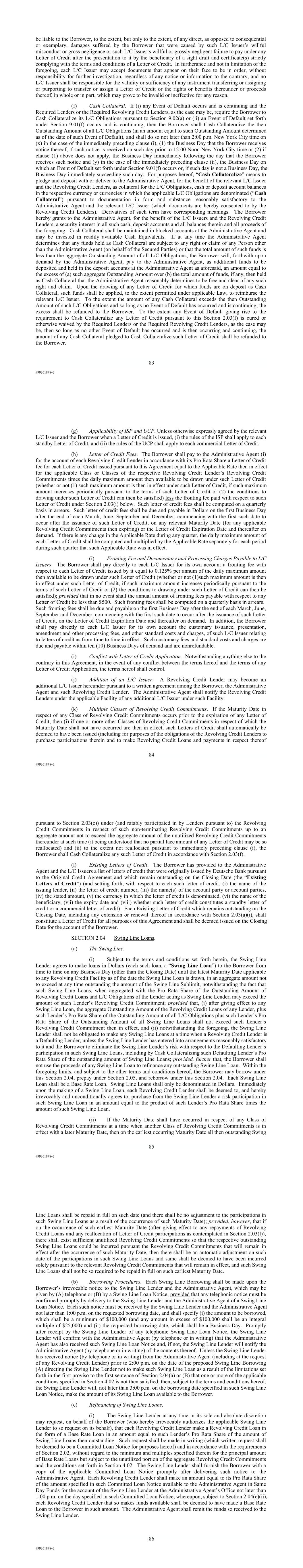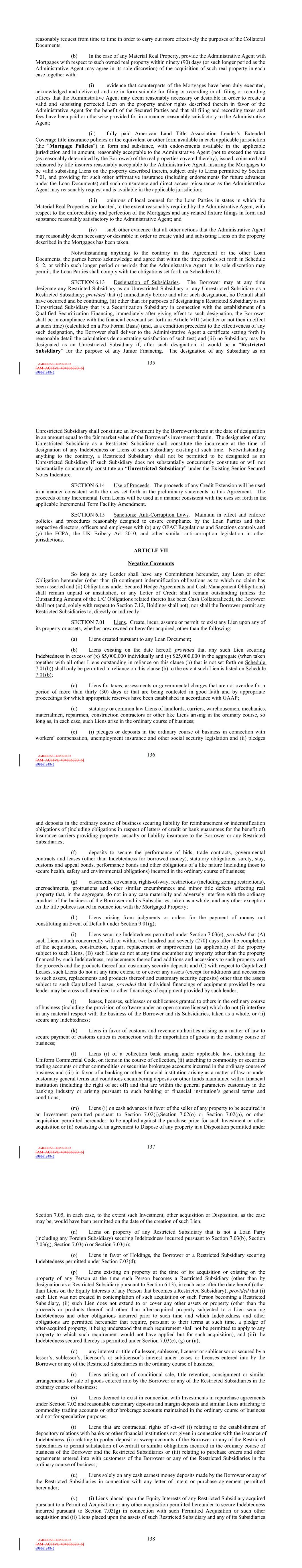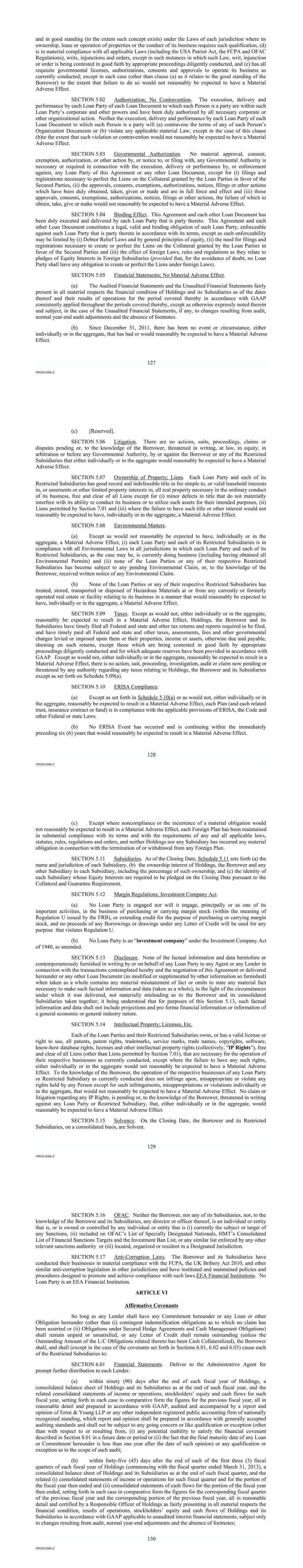 | 10.124 | | First Lien Pari Passu Credit Agreement, dated as of June 13, 2023, among Sabre GLBL Inc., as borrower, Sabre Holdings Corporation, as holdings, Sabre Financial Borrower, LLC, as lender, and Wilmington Trust, National Association, as administrative agent (incorporated by reference to Exhibit 10.3 of the Sabre Corporation’s Current Report on Form 8-K filed with the Securities and Exchange Commission on June 16, 2023). |