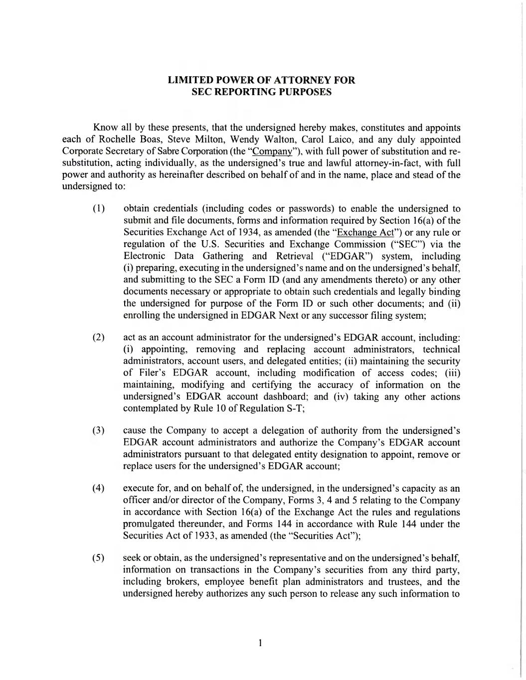 | 2. The options to purchase shares of common stock of Sabre Corporation are fully vested and exercisable. |