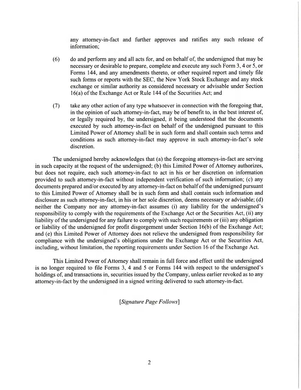 | 1. A. Includes a grant of restricted stock units awards on May 15, 2023 of which 16,763 will vest on May 15, 2026. B. Includes a grant of restricted stock units awards on May 15, 2024 of which 36,8043 will vest on May 15, 2026 and 36,804 will vest on May 15, 2027. C. Includes a grant of 100,000 restricted stock units awards on May 15, 2025 which will vest in three equal installments beginning on the first anniversary from the grant date. Vesting of the three awards is subject to the Reporting Person's continued employment through each vesting date. |