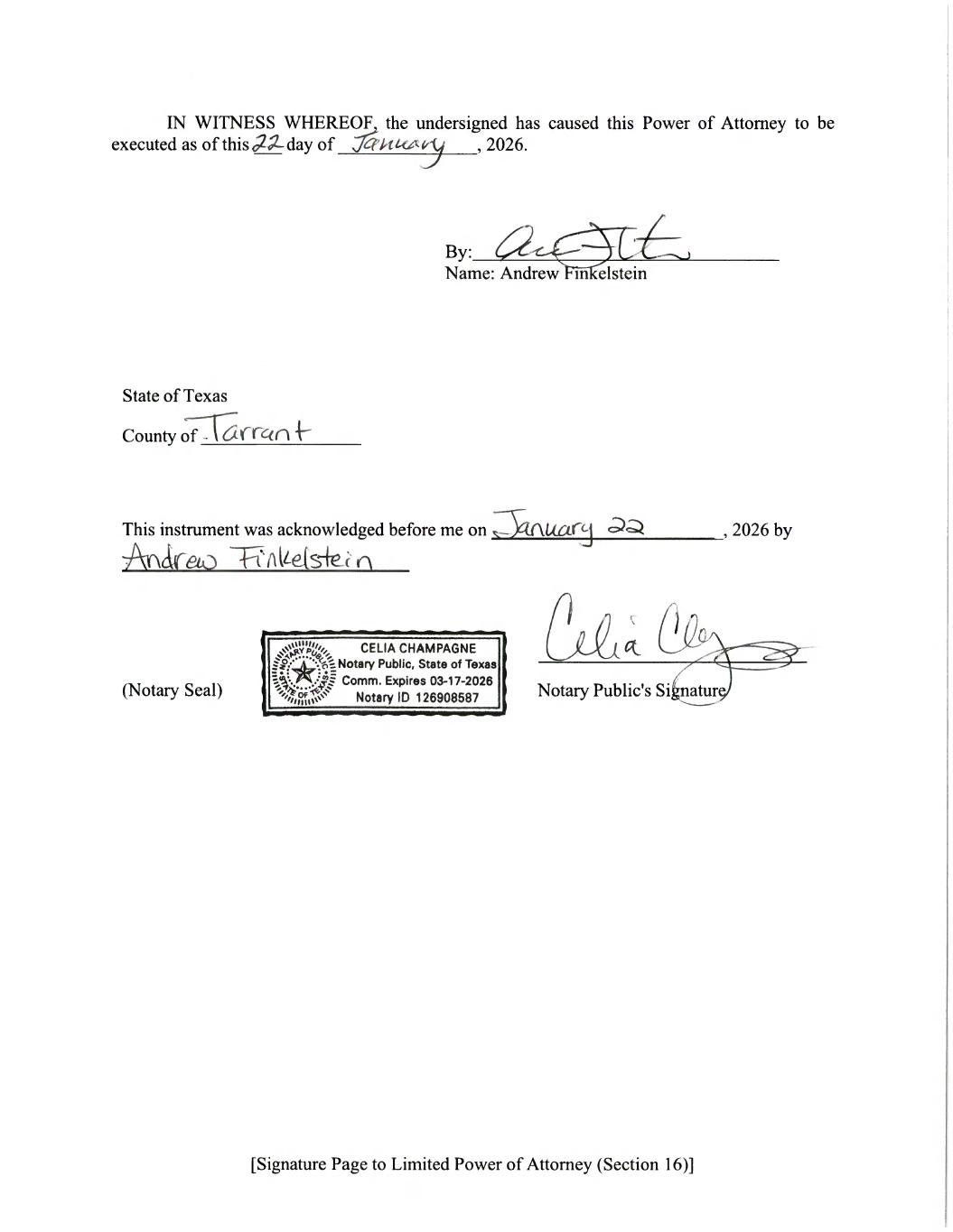 | /s/ Steve Milton, as attorney-in-fact for Andrew Finkelstein | 02/23/2026 | |